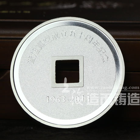 用壓印成的金銀幣,再沖去中間的方孔,替代古代的錢幣鑄造的辦法,現(xiàn)代紀(jì)念章定制仿制古代的方孔錢。如1998年發(fā)行的大唐鎮(zhèn)庫金錢金銀紀(jì)念幣。