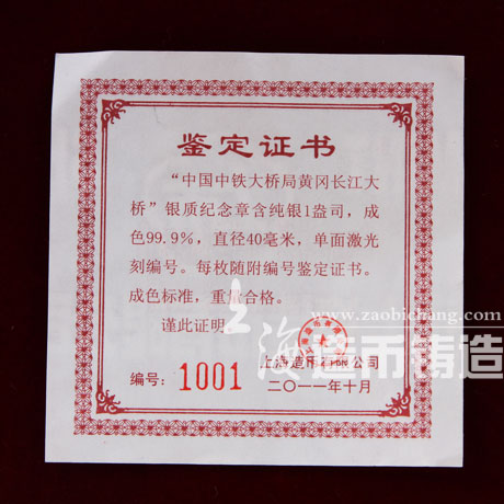 中鐵黃崗長江大橋定做純銀紀(jì)念章 獎?wù)? 獎?wù)轮谱?紀(jì)念章制作 金銀章定制 / 人氣: