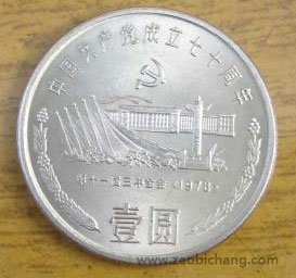 在1991年的時候是中國共產(chǎn)黨成立70周年的重要日子,央行為了紀(jì)念這一天重要的日子,也是一個歷史的大事件,中央銀行決定在91年的時候發(fā)行1元紀(jì)念幣,這款紀(jì)念幣的正面是中華人名共和國的國徽以及中華人民共和國國名還有發(fā)行年號,背面的圖案有三種,分別刊印在三枚紀(jì)念幣上。第一枚的圖案是第一次全國代表大會的會址,第二枚是遵義會議的會址,第三枚的圖案是第一屆三中全會的會址以及面額。