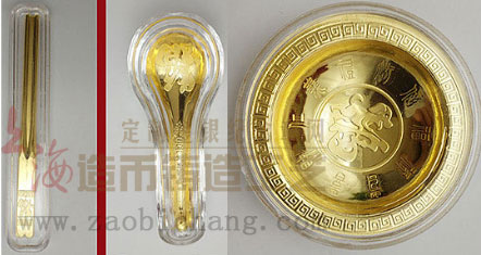 聚福三寶金碗金勺金筷三件套定制 / 人氣: