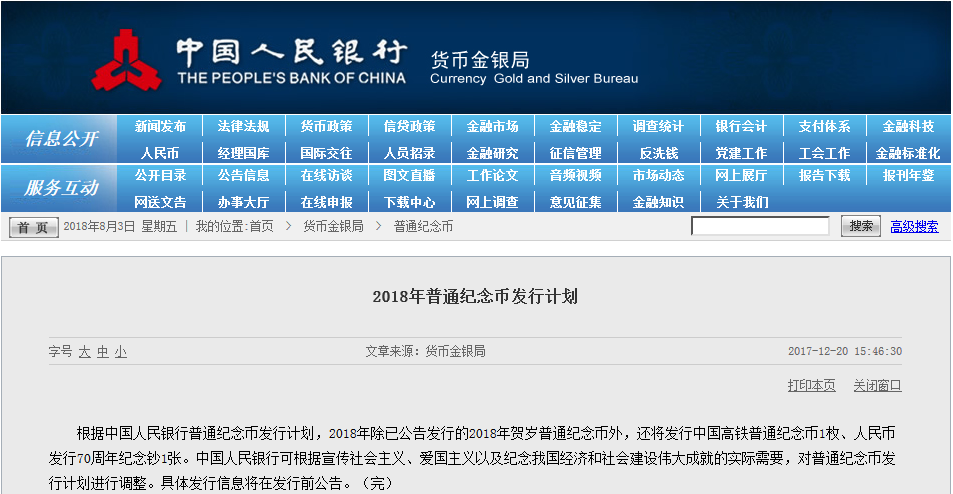 那2018年人民發(fā)行70周年的紀(jì)念幣是什么時間呢?