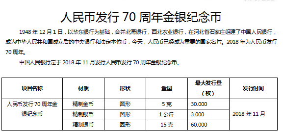 在2017年12月20日中央公布的“2018年普通紀念幣的發(fā)行計劃”中,2018年除以公告發(fā)行的2018年賀歲普通紀念幣以外,還將發(fā)行“中國高鐵普通紀念幣”和“人民幣發(fā)行70周年紀念鈔”。大家可能已經知道了“中國高鐵普通紀念幣”將在今年的9月3號發(fā)行,時間已經確定了,那“人民幣發(fā)行70周年紀念鈔”將會在今年的什么時候發(fā)型呢?
