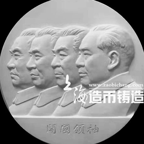 我們的“開(kāi)國(guó)”石膏模,正面圖案為毛澤東、劉少奇和朱德的頭像,四位偉大人物的形象眾所周知,這個(gè)對(duì)雕刻記憶和細(xì)節(jié)要求非常高,雕刻師不負(fù)眾望,運(yùn)用準(zhǔn)確生動(dòng)對(duì)浮雕語(yǔ)言表現(xiàn)技法,為我們展現(xiàn)了四位偉大人物的光輝形象,整體浮雕畫(huà)面給我們沉穩(wěn)莊重的視覺(jué)效果。