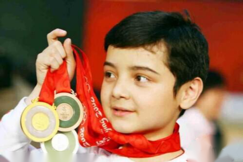 童星阿爾法展示奧運(yùn)獎(jiǎng)牌。